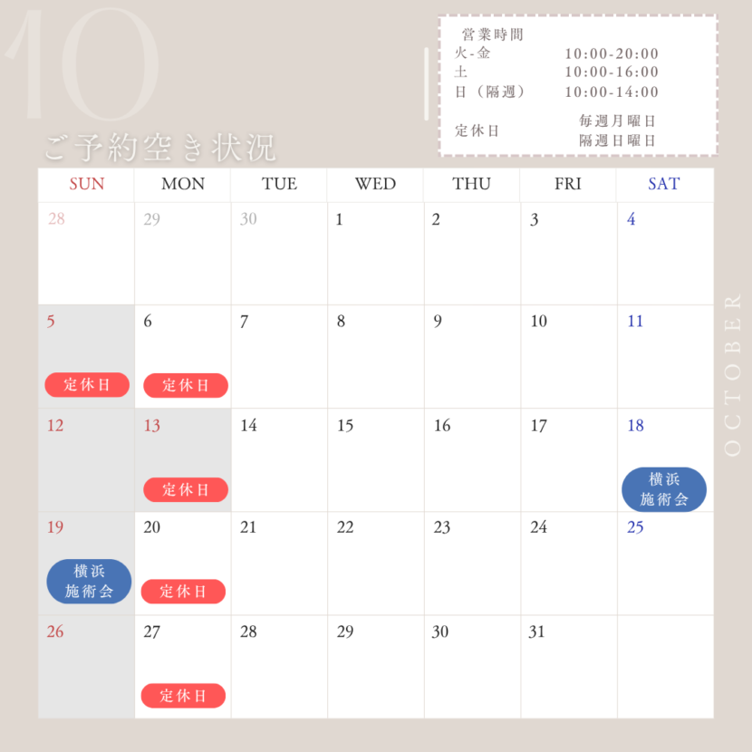 10月の開院スケジュール