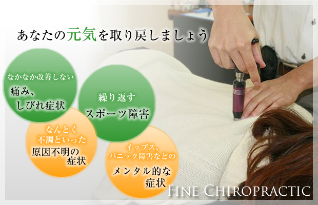 身体をコントロールしている神経機能異常の調整から、筋骨格系・免疫系・自律神経系・内分泌系・メンタル系などの慢性症状の改善をサポート。