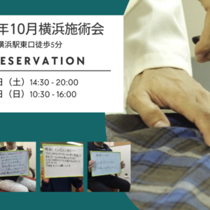 11月横浜施術会 開催決定!(11/13更新)心身症:ストレスに起因した症状(イップス・書痙・不眠・パニック障害・慢性痛など)に